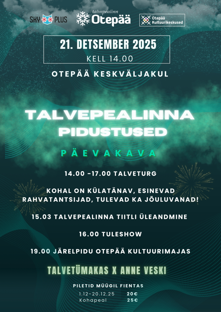 21. detsembri pärastlõuna on Otepääl täidetud talvise meeleoluga, nimelt kerkib kell 14.00 Otepää keskväljakule talvepealinna linnak. Toimub traditsiooniline talveturg, kus on võimalik osta rikkalikku toodangut – käsitööd, toidukaupa ja muud põnevat. Kellel veel jõulukuuske pole, saab selle samuti turult soetada. Otepää Naisselts pakub kuuma suppi. Kohal on ka Otepää piirkonna talispordi suursündmuste esindajad, kes tutvustavad oma tegevusi. Otepää noortekeskuse noored korraldavad kõigile erinevaid sportlikke mängusid. Avatud on ka Otepää Külade Ühenduse Külatänav, kust leiab ägedaid väljapanekuid ja palju üllatusi. Tublisid külasid auhinnatakse nende panuse eest!